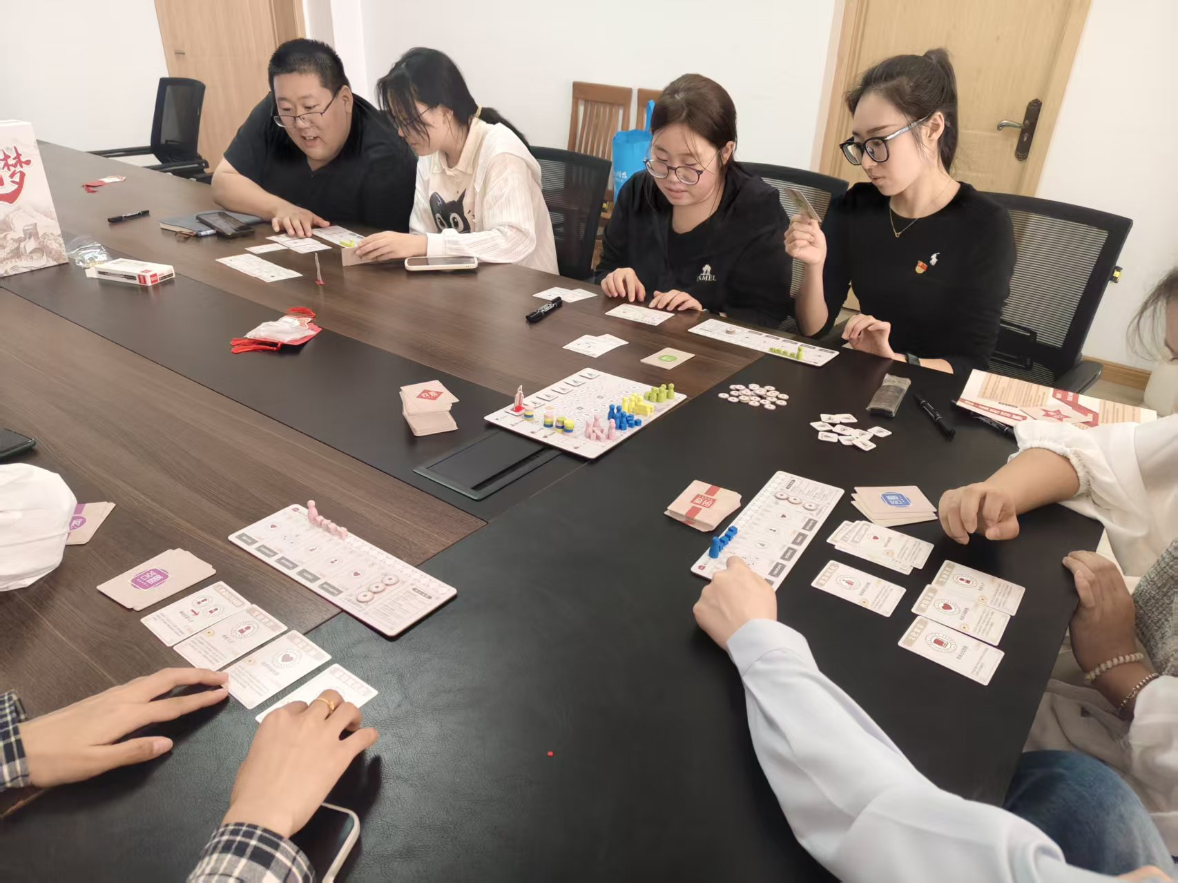 活动还创新的引入了《强国梦》文创桌游,该游戏设计灵感来源于我国经济社会发展的伟大实践,融入了党政知识答题、人才等元素,通过趣味答题的形式,让参与者在游戏中学习政治理论知识和党史知识。志愿者们在游戏扮演国家建设者的角色,共同参与国家建设和发展,通过完成各种任务和挑战,深入了解国家的发展历程,民族自豪感和自信心得到了增强。