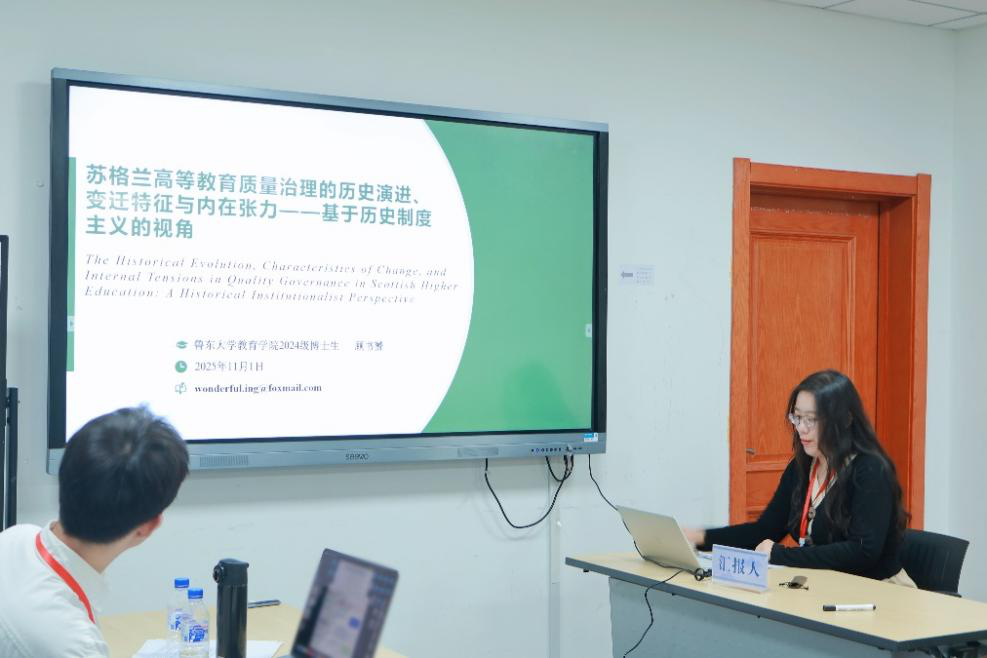 本次论坛包含大会主题报告与分论坛报告,吸引了全国多所院校的硕博士生参与。我院教育学专业2024级博士研究生顾书赟围绕会议议题撰写学术论文,经评审后受邀在“中外教育史研究的交流与互鉴”分论坛上以《苏格兰高等教育质量治理:历史演进、变迁特征与内在张力》为题进行学术报告。该研究以历史制度主义为理论视角,通过梳理其历史演进、剖析其背后的变迁特征与内在张力,为我国大学深化质量改革提供一定的镜鉴启示。