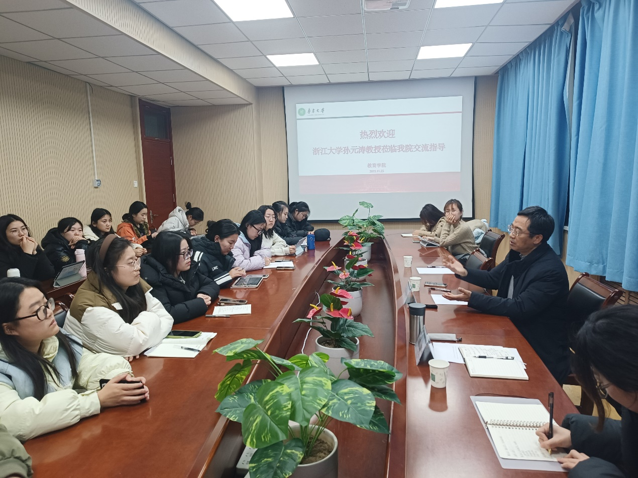 2025年11月25日,浙江大学教育学院博士生导师、中国教育学会教育学分会常务理事、全国教育基本理论学术委员会委员、华东师范大学“生命·实践”教育学研究院特聘研究员孙元涛教授应邀来我校进行学术交流,并作题为《执两用中:课堂学教关系转型的方法论反思》的专题报告。