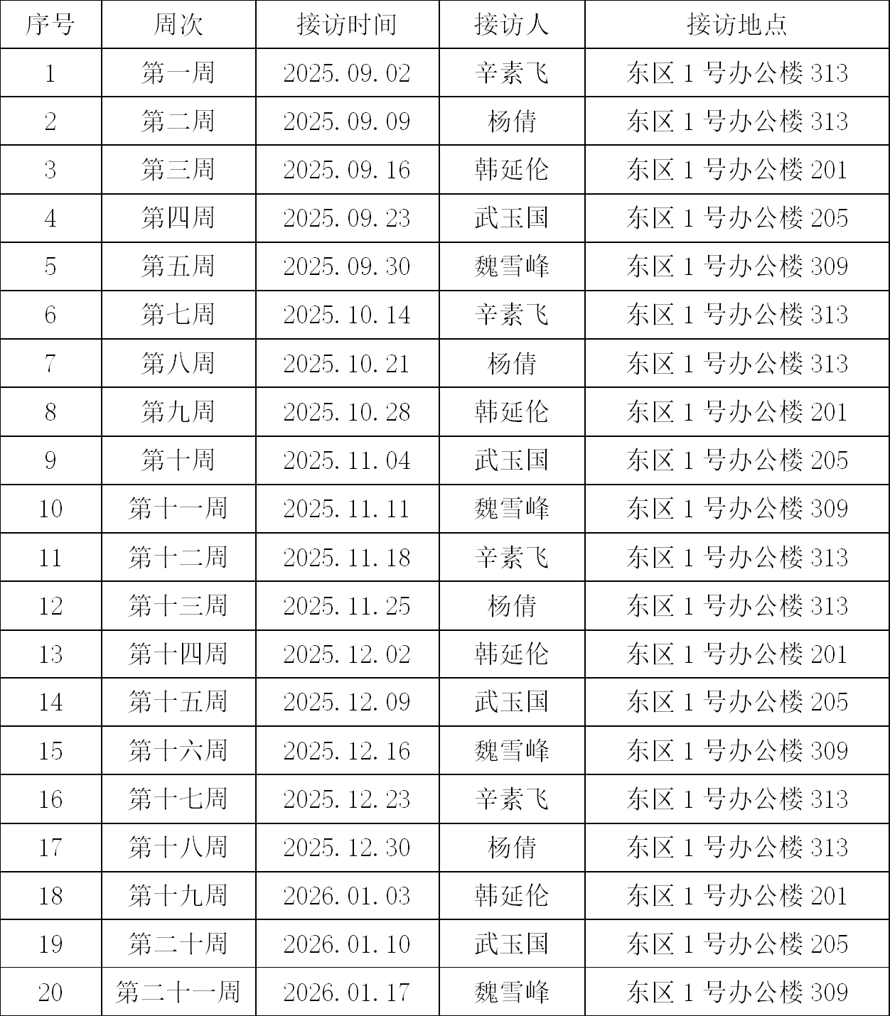 教育学院2025-2026学年第一学期学院领导接待日安排表