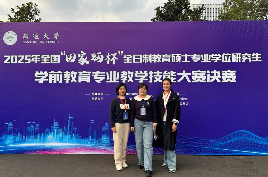 11月2日,2025年全国“田家炳杯”全日制教育硕士专业学位研究生(学前教育)专业教学技能大赛决赛在南通大学圆满落幕。我院学前教育专业2024级研究生牟容萱获二等奖,于艺偎老师获评“优秀指导教师”。